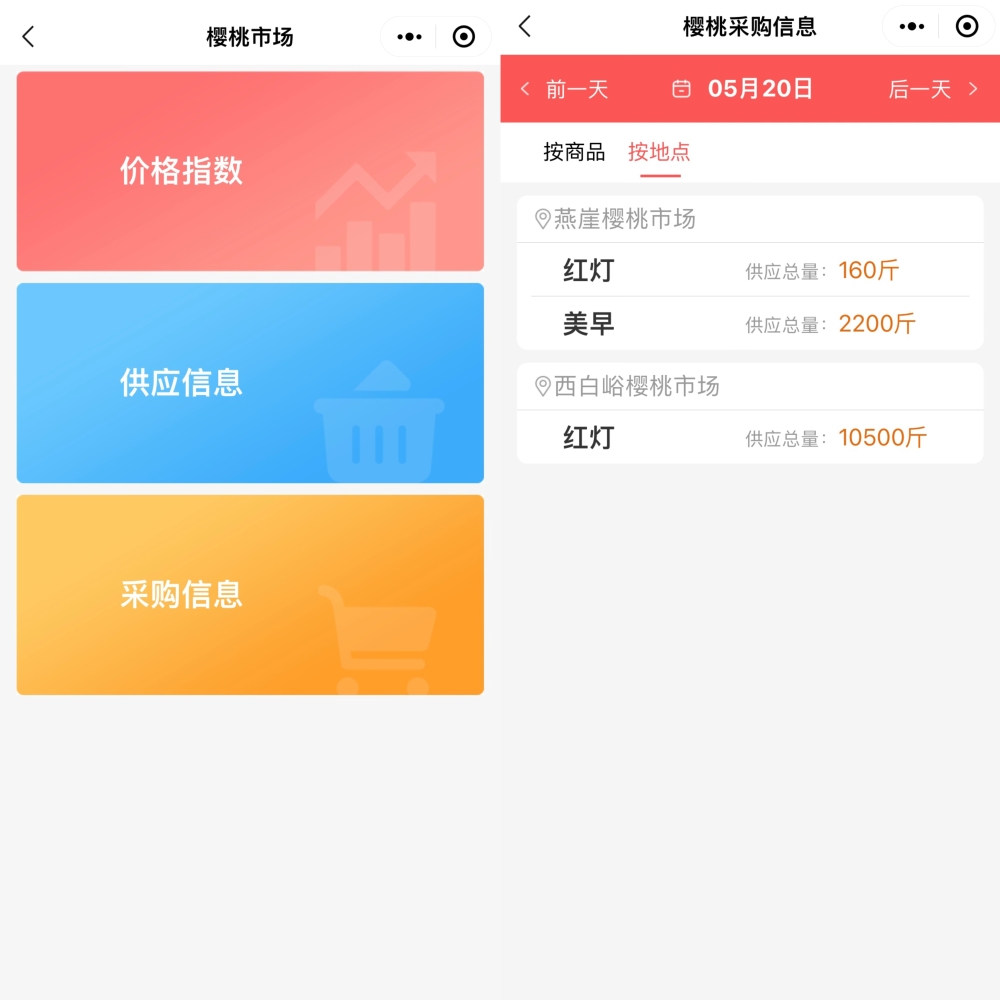 燕崖镇是远近闻名的“樱桃小镇”。自1992年开始种植大樱桃,经过30多年的发展,目前燕崖镇大樱桃种植规模达到6万亩,种植户占全镇总户数的95%以上,是江北地区集中连片发展大樱桃面积最大的乡镇,辐射带动沂源县发展大樱桃10万余亩。 为推动樱桃产业高质量发展,燕崖镇研发“数字燕崖”小程序,开设燕崖动态、民生指引、三务公开、随手拍、热点资讯、周边美食娱乐“附近”等10余项模块。在每年大樱桃集中上市交易期间,开发“数字燕崖”数字乡村系统平台,创建了“樱桃价格指数”模块,设置供求信息发布、价格指数参考模块功能,每日早晚精确统计并实时发布交易价格,及时转发至各村村民群。天气变化、防治裂果、防治果蝇等问题及时通过微信群、公众号、村广播发布指导信息,全力保障果农收益。 2023年5月中上旬樱桃上市前期,燕崖镇全体班子进村宣讲,将大樱桃品种技术更新换代、市场交易安全、一网三联、防汛安全等作为重要宣讲内容,现场发送印有“数字燕崖”小程序的手机贴纸10000余张。截至目前,小程序点击使用量已突破40万人次。 | |||
