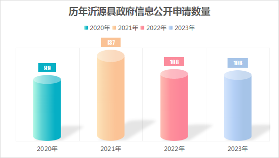 2023年,沂源县严格按照《中华人民共和国政府信息公开条例》相关规定,进一步强化依申请公开办理程序,不断提升依申请公开工作水平,共受理政府信息公开申请106件,同比减少1.85%,申请内容主要集中在土地征收、社会保障等领域,全部依法依规予以办理。