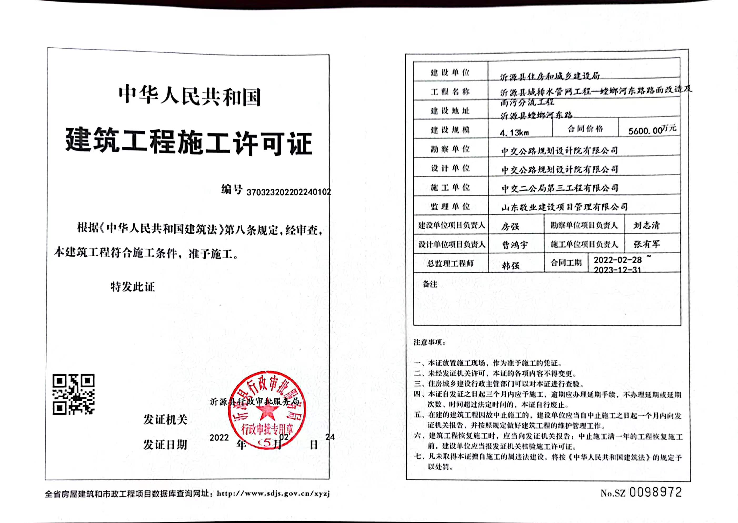 【2023年项目】沂源县道路和污水管网建设项目