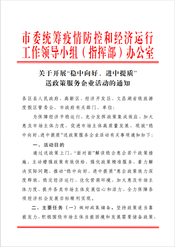 关于开展“稳中向好、进中提质”送政策服务企业活动的通知