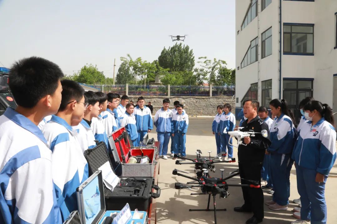 “准备就绪,请求起飞!”随着指挥员一声令下,县局警用无人机小组民警立即操作警用无人机飞向天空,在学生们惊叹声中,警用无人机在空中完成了一个个高难度的战术动作后安全返回。活动现场,民警向师生们展示了各种无人机装备,并详细介绍了各类装备在警务实战中的具体应用。在互动环节中,师生们踊跃报名尝试,在民警的悉心指导下亲自尝试操作警用无人短距离飞行,充分感受到了警用无人机的独特魅力!