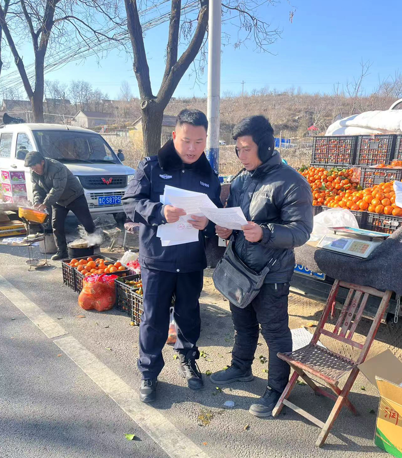 1月10日,大张庄派出所深入辖区集市开展禁售禁限放烟花爆竹检查和宣传工作。