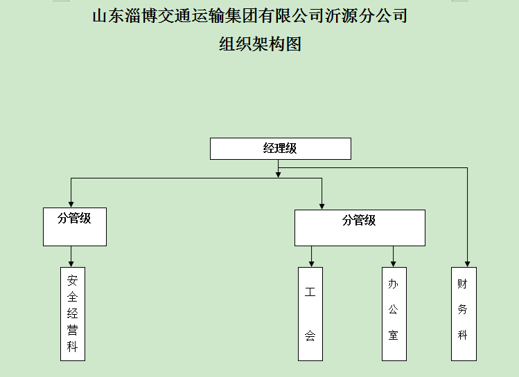 | 标题: | 山东淄博交通运输集团有限公司沂源分公司机构设置 | ||