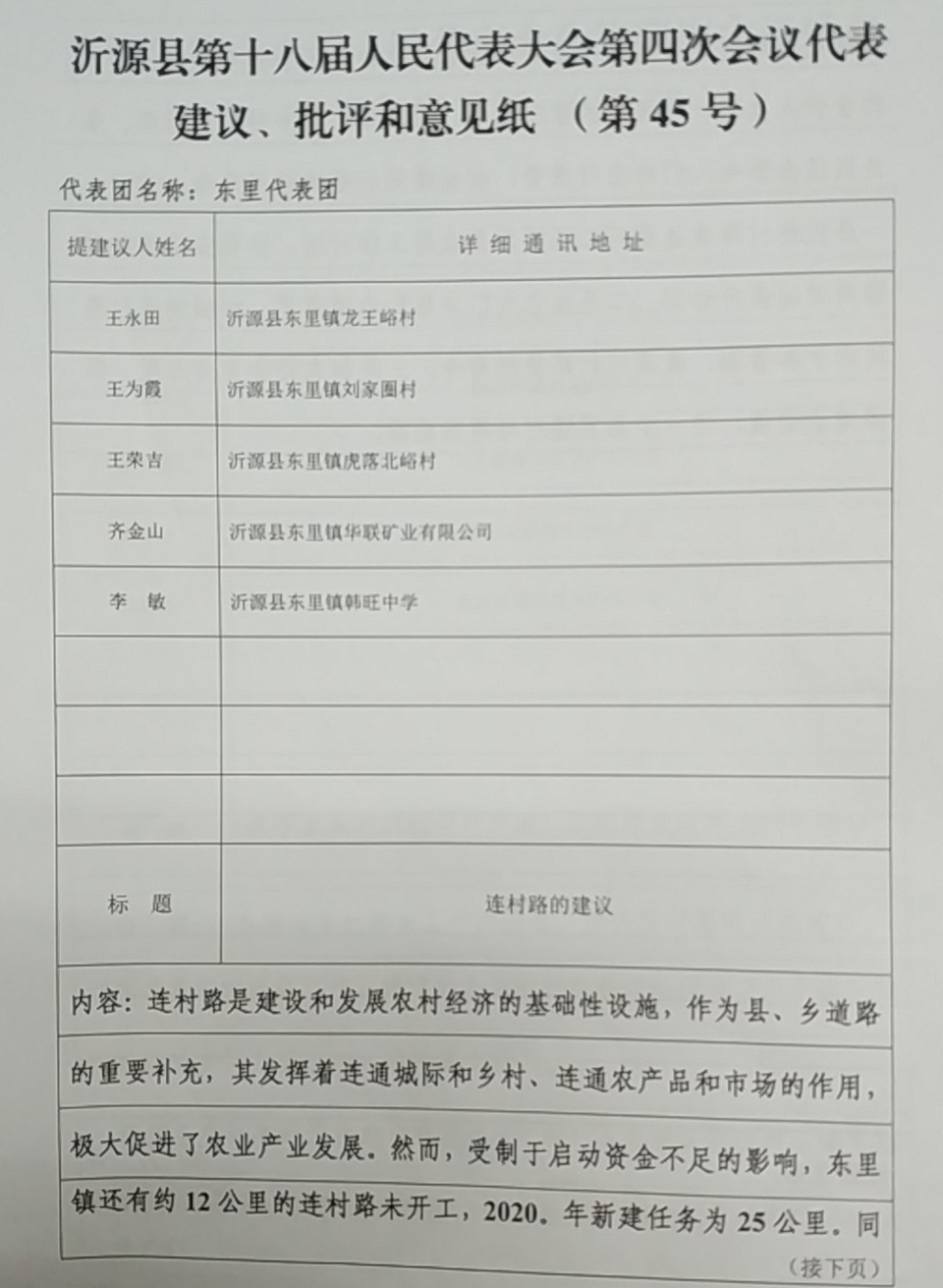 您提出的关于连村路建设的建议收悉。现答复如下: