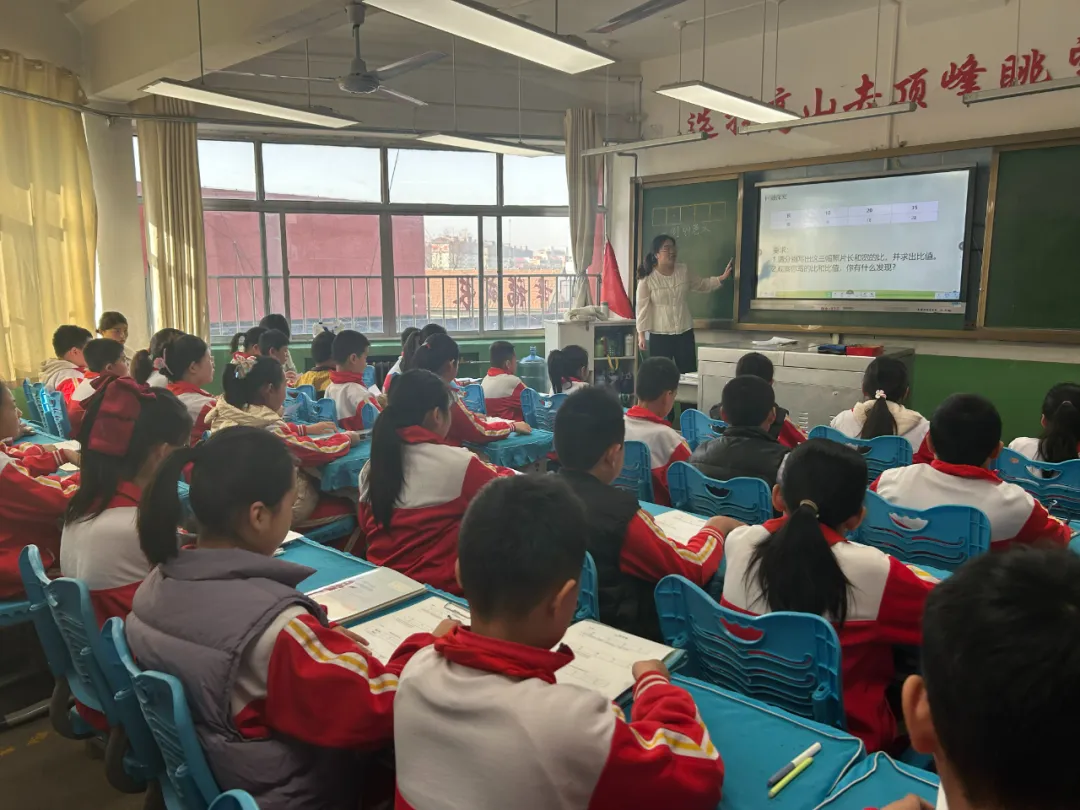 荆山路小学教师陈慧新执教数学课《认识负数》,从生活情境出发,借助温度计使学生对“相反意义的量”有了更深的体验。荆山路小学教师张维肖执教《比例的意义》,在复习旧知及具体情境中,学生通过运用观察、计算、讨论等方式加深对比例的理解。