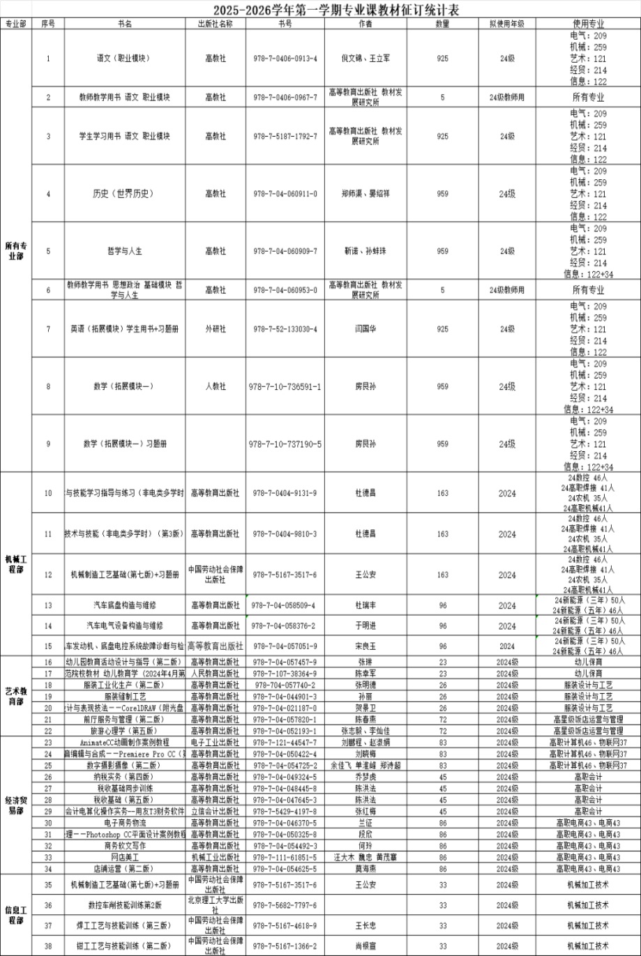 | 标题: | 淄博电子工程学校2025年秋季学期教材、教辅征订明细 | ||