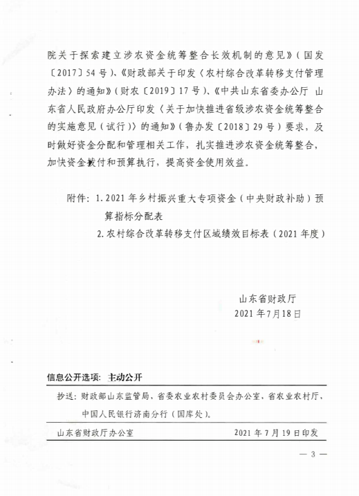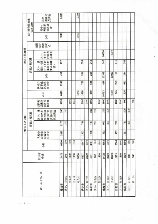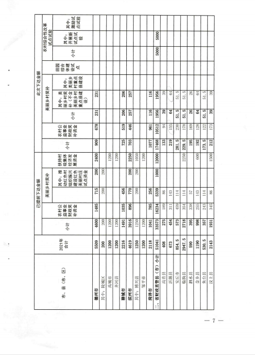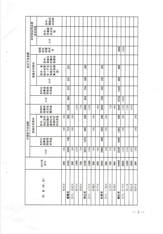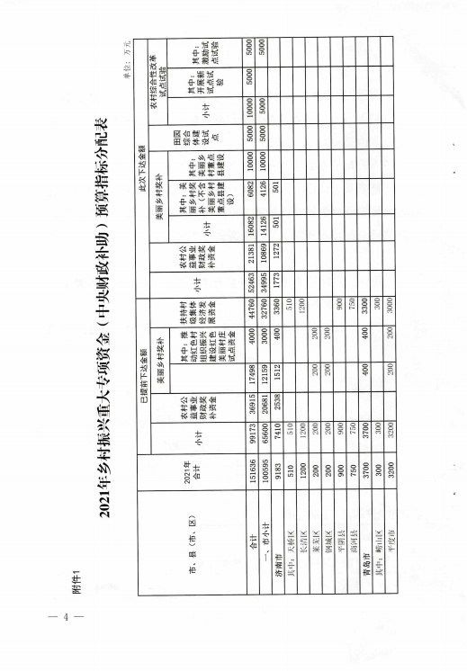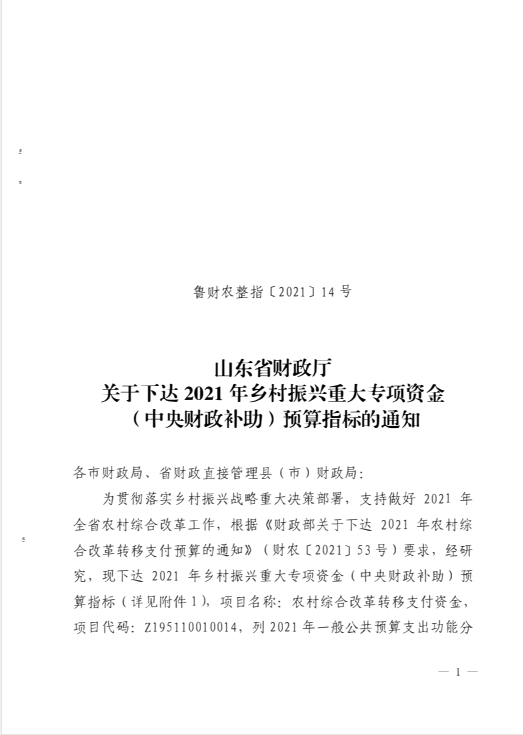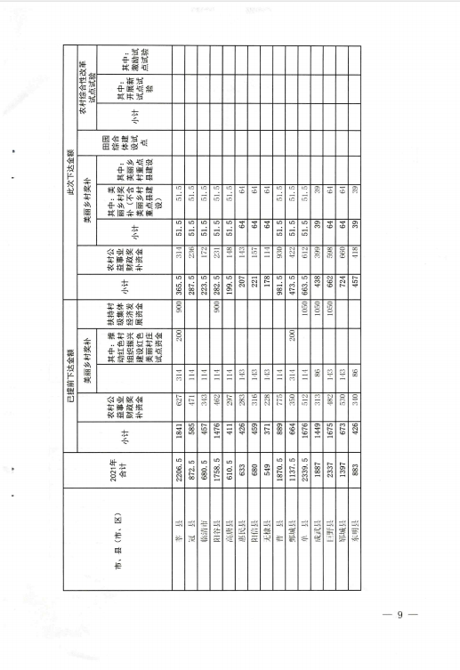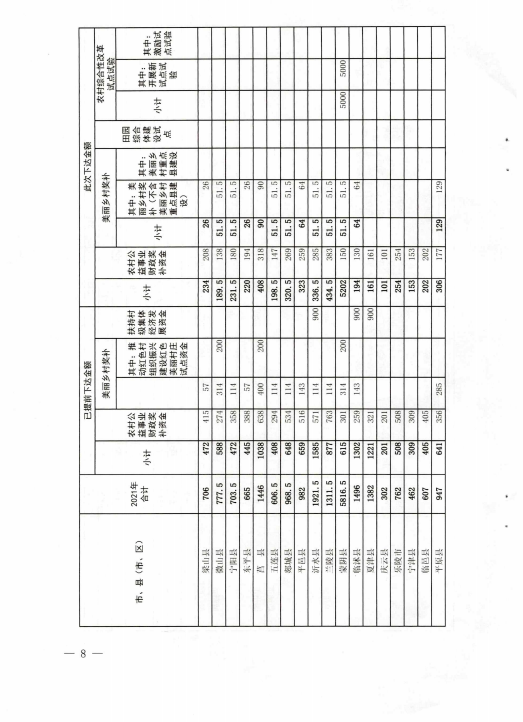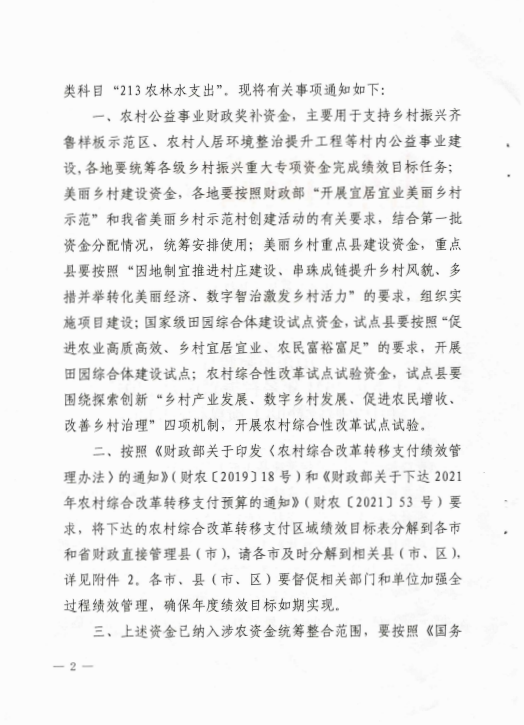 关于下达2021年乡村振兴重大专项资金 (中央财政补助)预算指标的通知(美丽乡村建设资金)