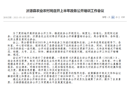 沂源县农业农村局政府信息公开指南(2025年6月修订)