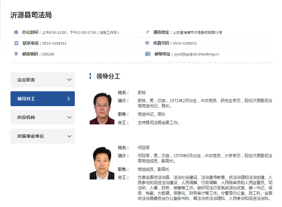 沂源县司法局信息公开工作主管部门为:办公室