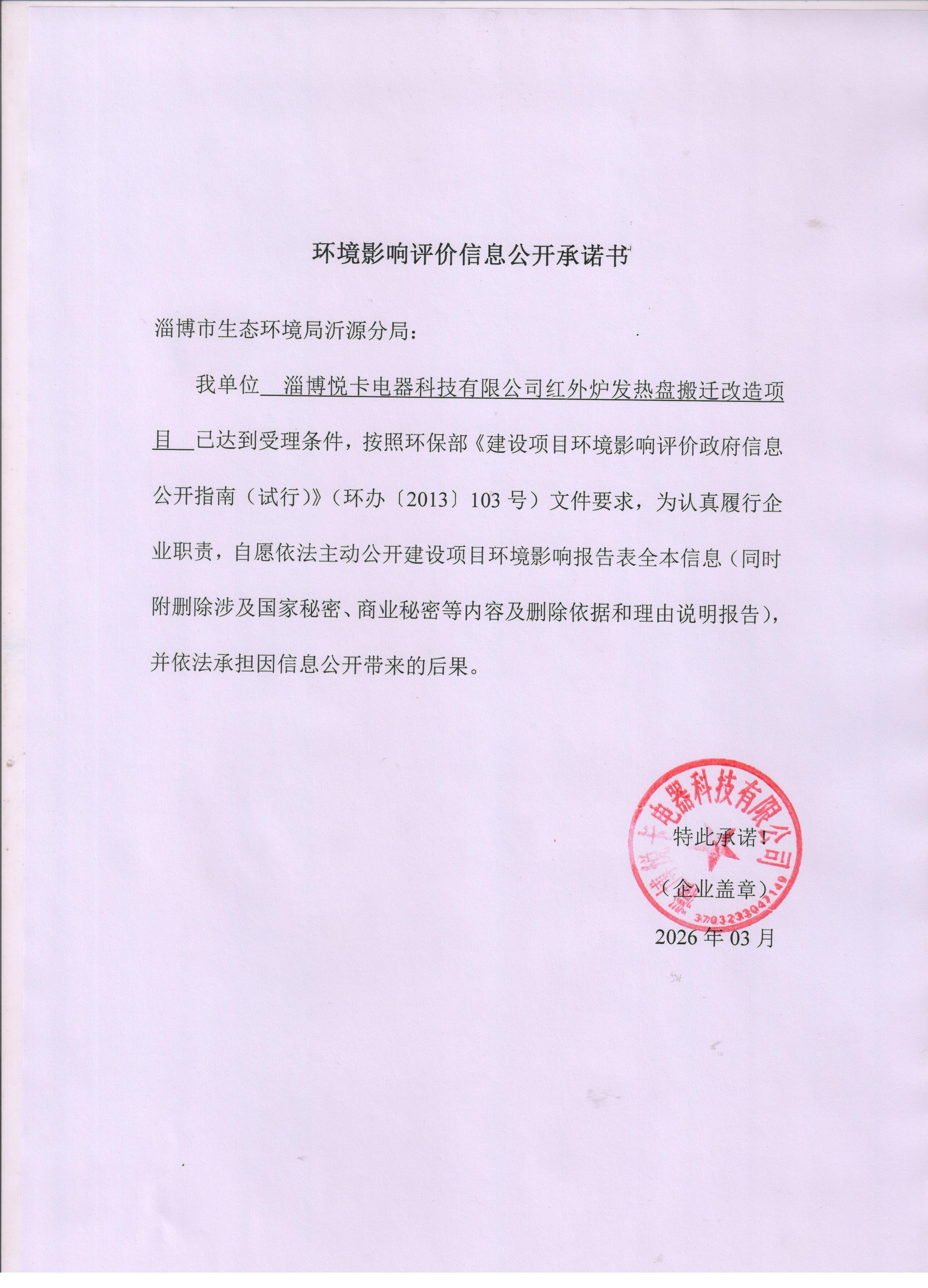 淄博悦卡电器科技有限公司红外炉发热盘搬迁改造项目 |