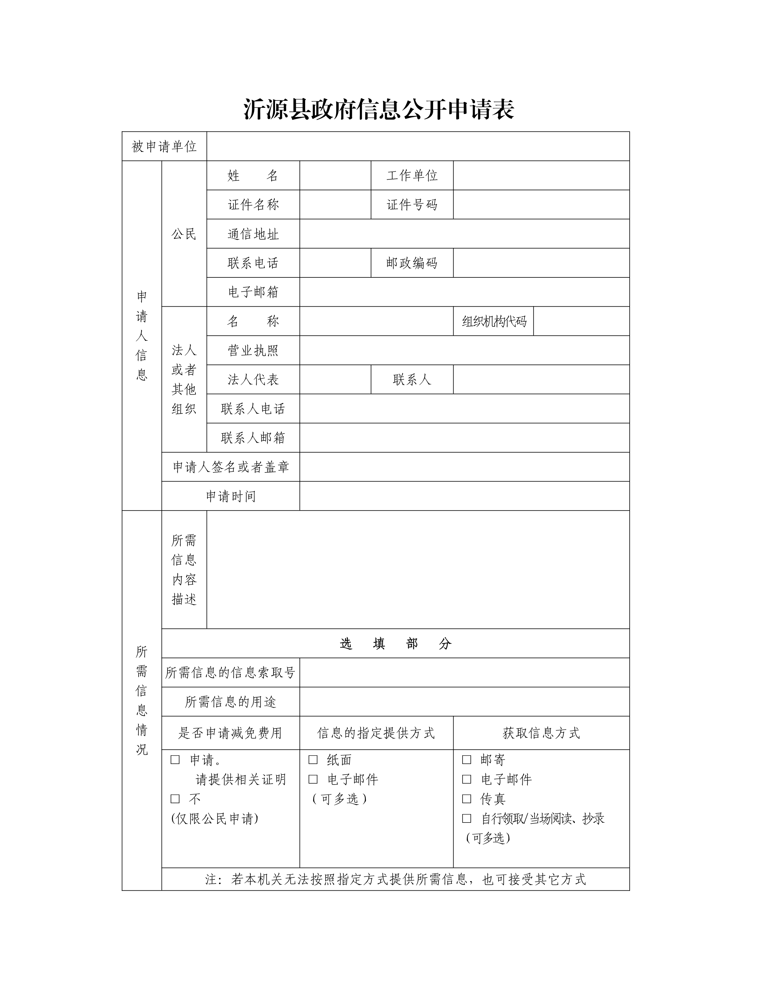 附件1、沂源县政府信息公开申请表