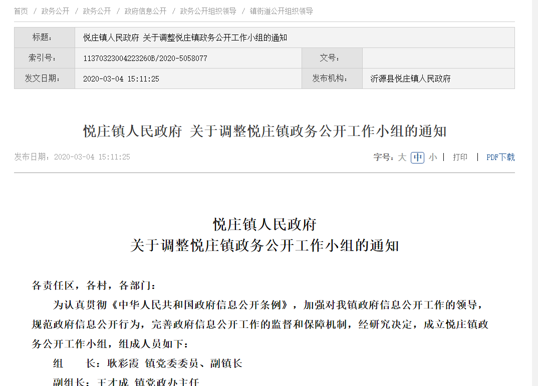 | 标题: | 沂源县悦庄镇人民政府2020年政府信息公开工作年度报告 | ||