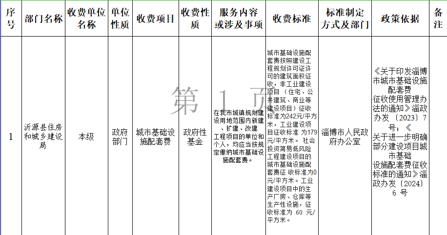沂源县住房和城乡建设局综合性涉企收费目录清单