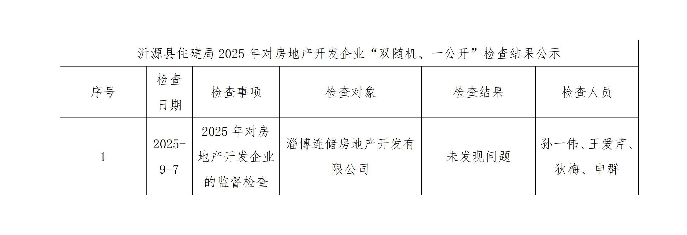沂源县住建局2025年第三季度行政执法情况检查结果公开