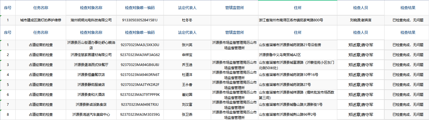 沂源县综合行政执法局2021年“双随机一公开”检查结果公示(四)
