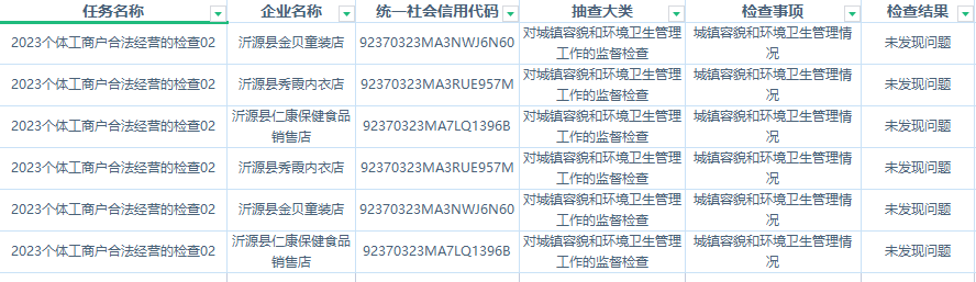 沂源县综合行政执法局2023年“双随机一公开”检查结果公示(六)