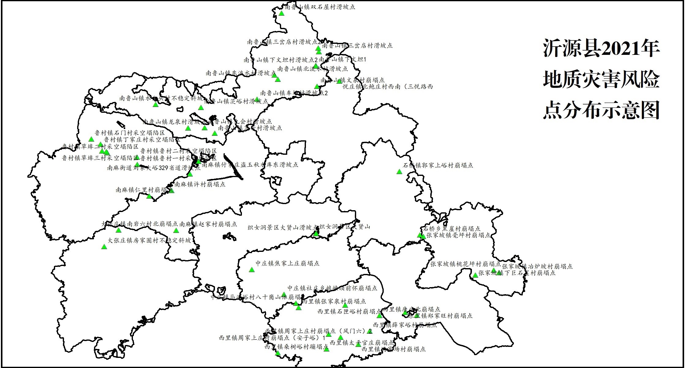 2.沂源县2021年地质灾害风险点分布示意图